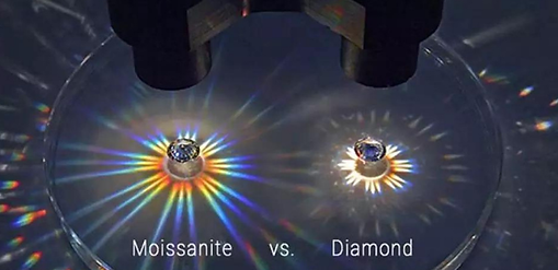 The dispersion rate of moissanite is strong but unnatural, and the crystals are not translucent enough.